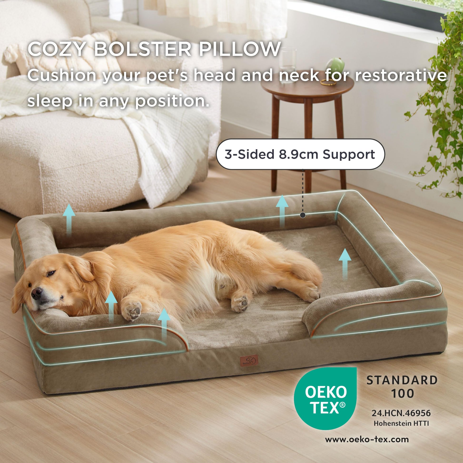 Bedsure Sofá Perro Ortopédica Extra Grande - Cama Perro Viscoelastica y Lavable, Colchon Perro con Funda Desenfundable y Forro Impermeable, Marrón Claro, XXL
