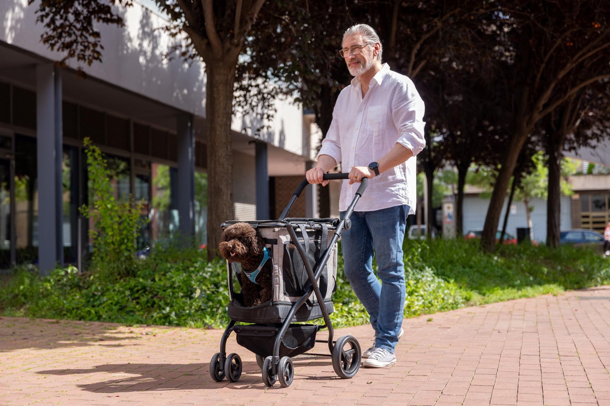 - 📦 CAPACIDAD ÓPTIMA Y MANEJO SUAVE Con una capacidad de hasta 12 kg en modo transportín, este carrito garantiza que tu mascota viaje de forma segura y cómoda. Las ruedas giratorias 360° aseguran una conducción suave y sin esfuerzo, permitiéndote maniobrar con facilidad, incluso en espacios estrechos o superficies irregulares. Ideal para paseos diarios, este modelo combina la funcionalidad con una experiencia de uso fluida y agradable, haciendo que cada paseo sea un verdadero placer tanto para ti como para tu mascota.