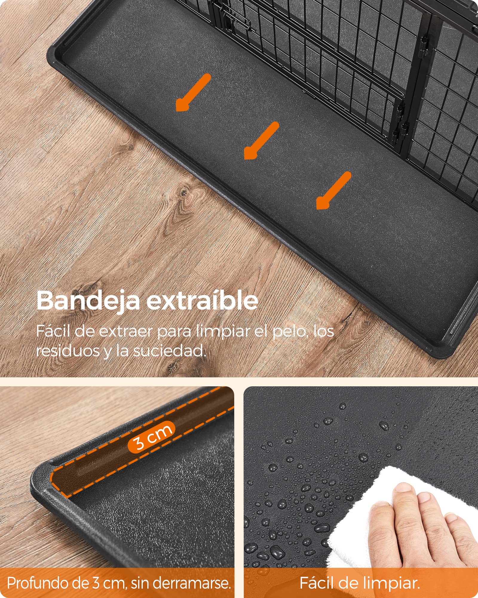 - 【DESMONTABLE Y VERSÁTIL】Retira la puerta fácilmente, cuando tu perro ya no necesite la restricción; o retira la puerta superior, esta jaula se convierte en un parque, un nido para el perro
