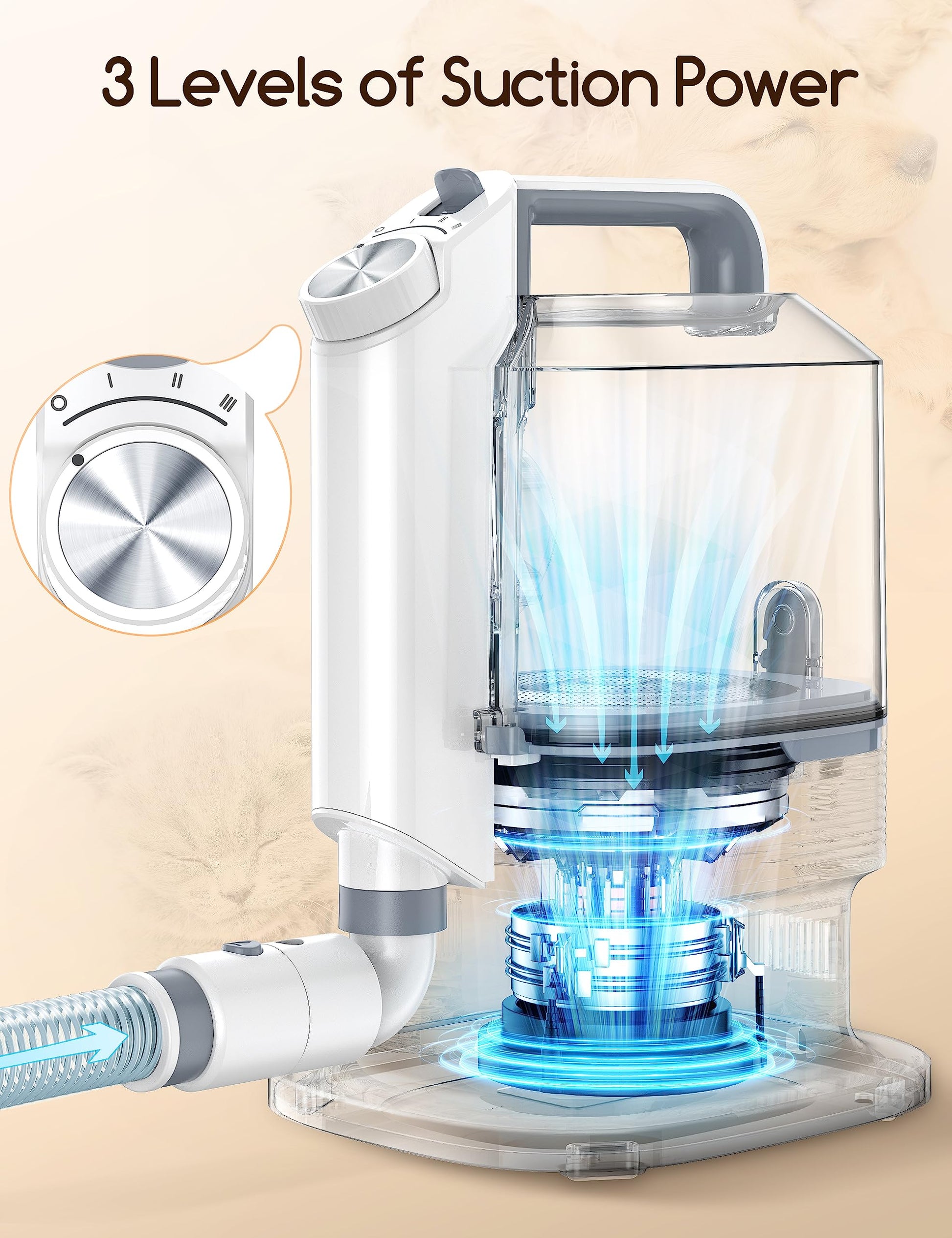 - Aspiradora y Cuidado de Mascotas: El kit de cuidado de mascotas Meowant no solo incluye herramientas profesionales de cuidado de perros, sino que también tiene 3 niveles de succión para eliminar el 99% del pelo de las mascotas, la succión máxima es de aproximadamente 13 kpa y el ruido es inferior a 72 dB. Haga que la limpieza del pelo de las mascotas sea más cómoda