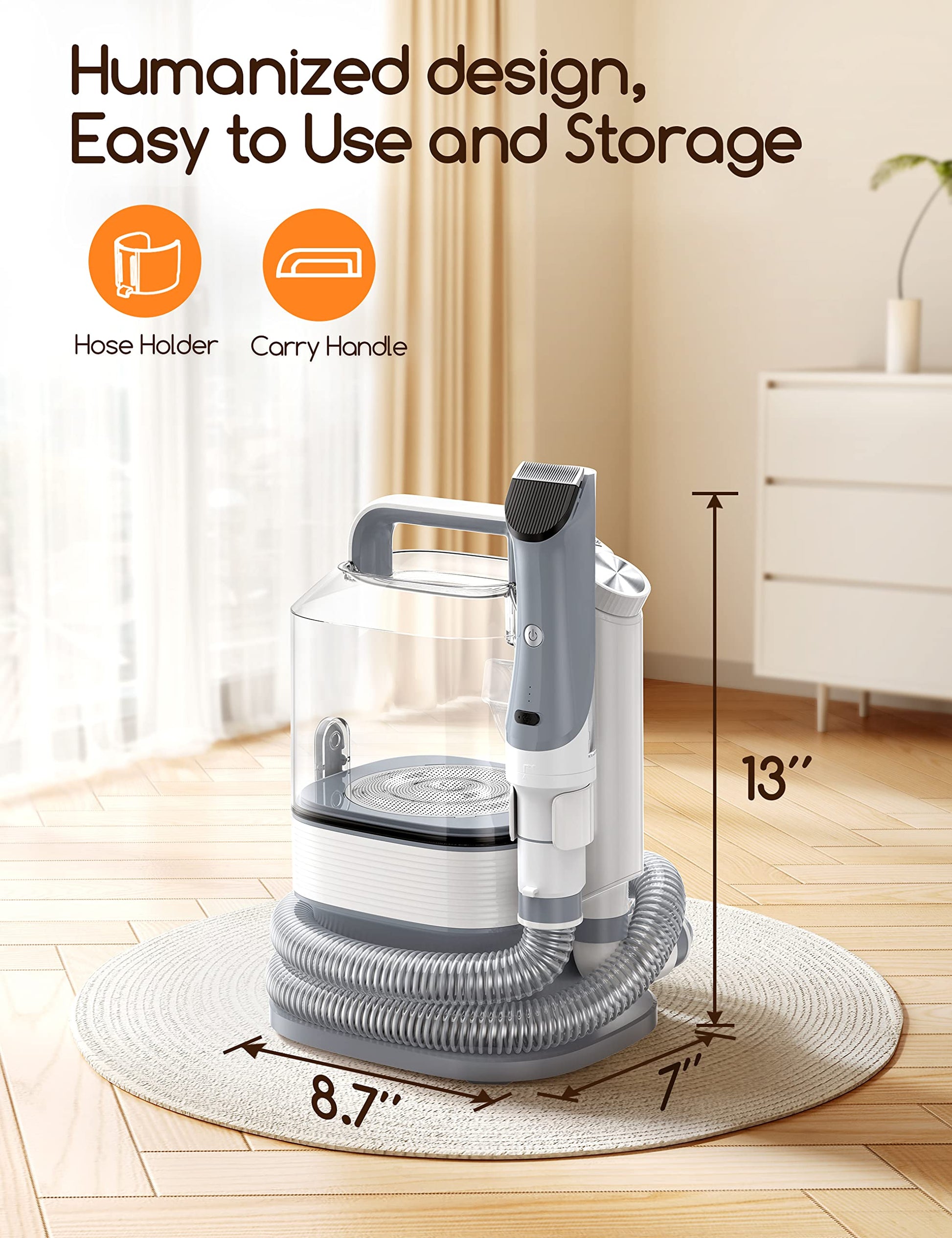 - Mayor Flexibilidad: El kit de cuidado para mascotas Meowant tiene una manguera de 4.8 pies/1.45 m de largo y un cable de alimentación de 8.5 pies/2.6 m, también tiene un soporte para manguera y un asa de transporte. El producto está diseñado ergonómicamente para brindarle más flexibilidad al preparar a su perro o limpiar su casa. Facilite el cuidado y la limpieza de mascotas con nuestro diseño fácil de usar