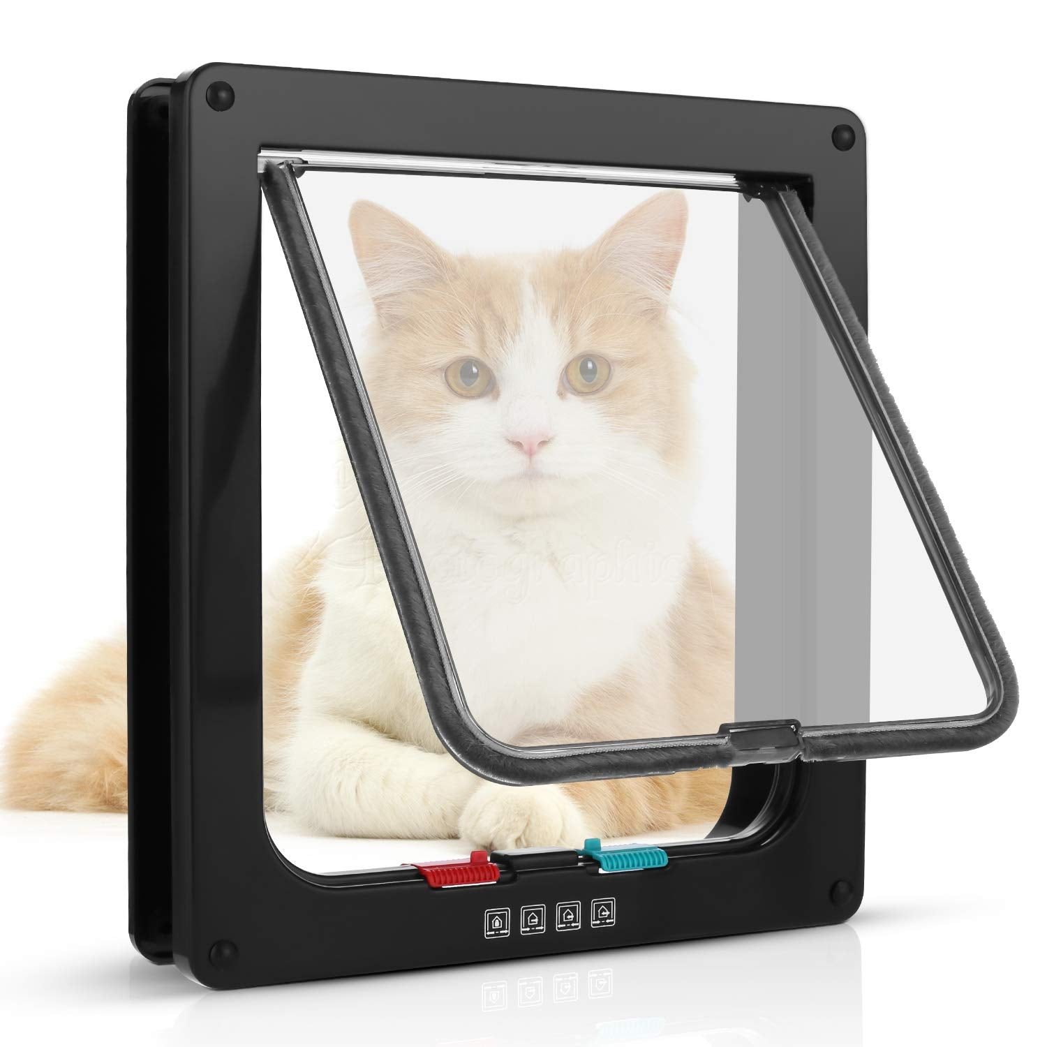 - Puerta para gatos Sailnovo 24,5*28,5*5,5cm, negra, talla XL, puerta para gatos con cerradura de 4 vías para puertas interiores y exteriores, puerta para mascotas resistente a la intemperie